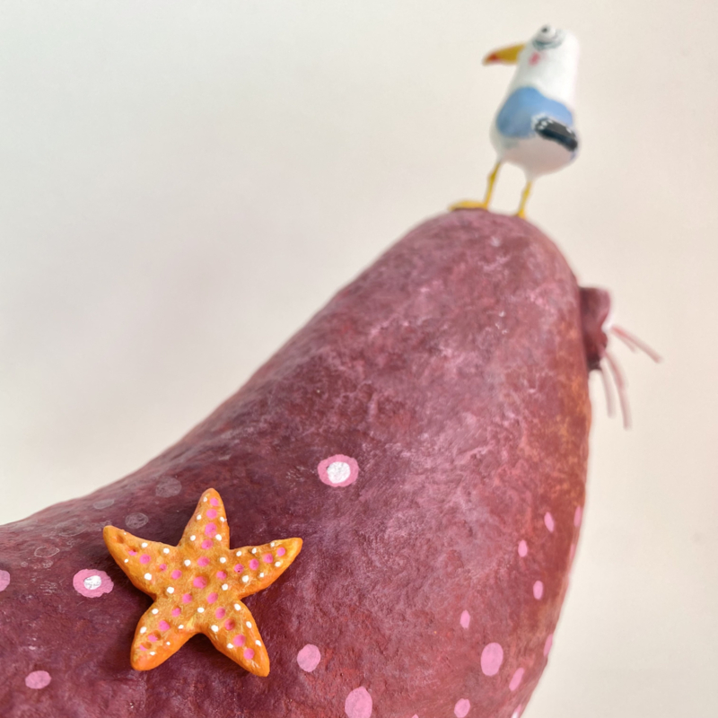 Burt en zijn zeevriendjes zijn handgemaakt van papierpulp en afgewerkt met acrylverf.
